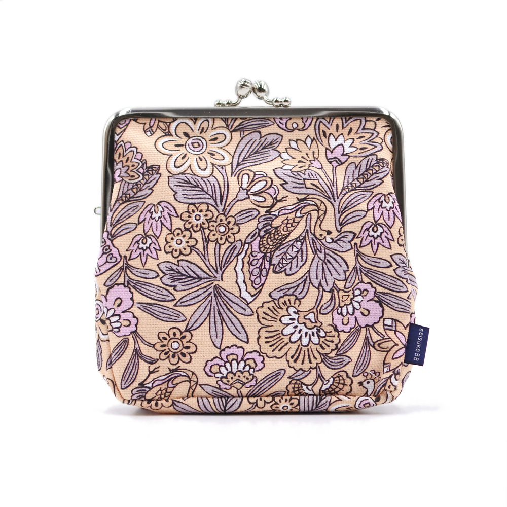 その姿と色彩の美しさにより神格化されてきた孔雀。害虫や毒蛇などを食べるとされていることから、悪霊を食べ邪気を払う瑞鳥としても尊ばれてきました。色あざやかな草花と共に意匠化された、大胆で華やかな吉祥文様です。