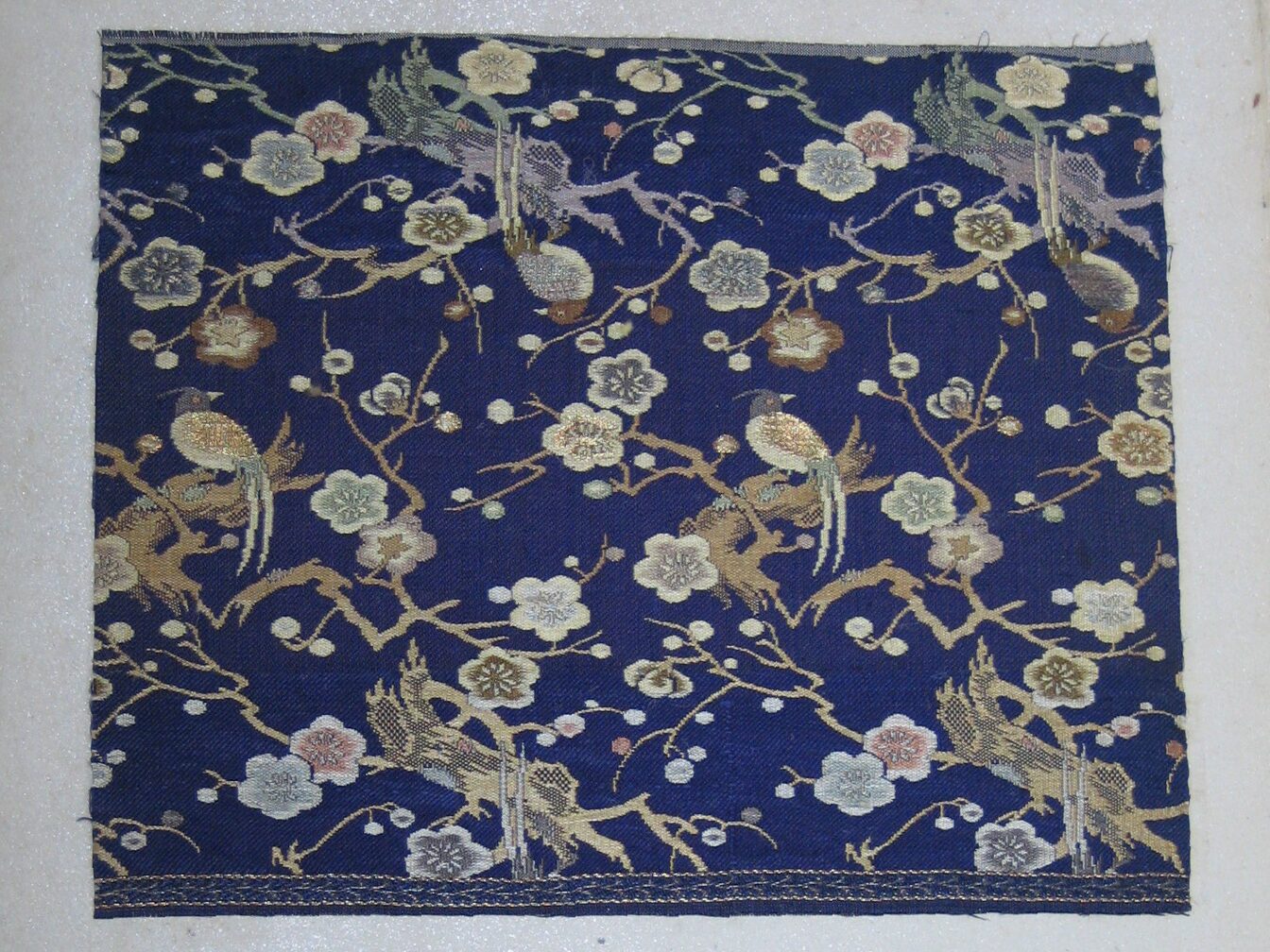小さな画面の中には、鳥の動きや枝ぶり、余白の取り方までが過不足なく織り込まれ、限られた条件の中で、いかに美しく見せるかという当時の織り手の工夫と、高い技術が感じられます。